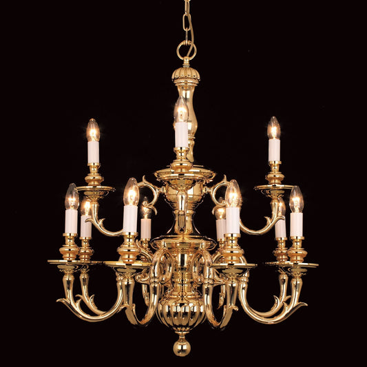 Impex Beveren 12 Light Flemish Brass Candle Chandelier