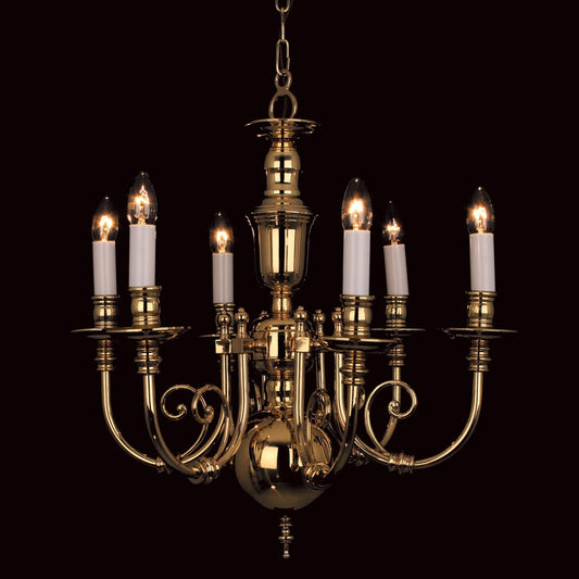 Impex Beveren 6 Light Flemish Brass Candle Chandelier